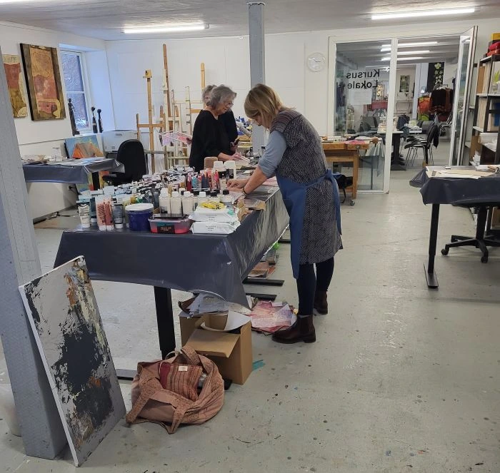 Midt i det kreative univers hos August Art, der breder sig over 530 m², finder du Molsbjerge A-Art – vores levende og inspirerende kursusafdeling. Her tilbyder vi et lyst og indbydende kursuslokale på 60 m², hvor der er plads til fordybelse, skaberglæde og læring i fællesskab.
