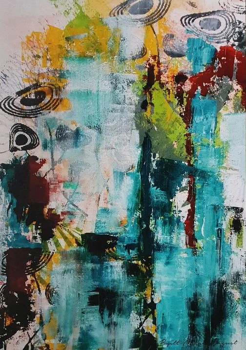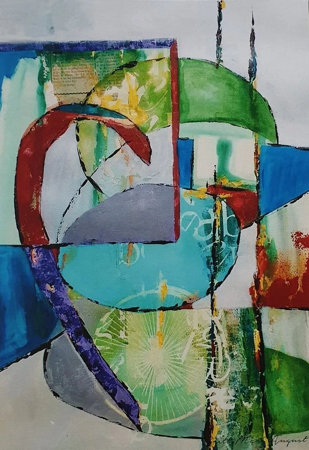 Når hun ikke underviser, arbejder Britt-Mari August med sin egen kunstneriske praksis. Hendes værker er inspireret af naturens former, farver og stemninger – særligt de sanselige indtryk fra Mols Bjerge. Hun arbejder intuitivt og lader materialer og øjeblikket guide skabelsesprocessen. For hende er kunsten både et fristed og en måde at finde mening og nærvær i en travl verden.