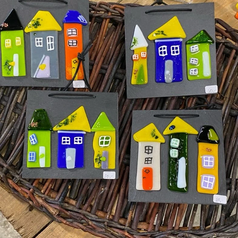 Min glaskunst spænder bredt – fra farverige værker i opalglas til elegante og enkle designs i klart glas. Hvert stykke er skabt med omhu og kærlighed til materialet. Jeg eksperimenterer løbende med nye teknikker og udtryk, og for mig er det netop legen med form og farve, der gør glasarbejde så dragende.